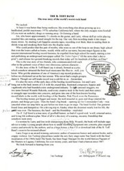 Scott claimed that he had indeed stopped making bootlegs over a year ago. All he had left was a small "forgotten" stash, he said. Scott had planned on contacting his former customers to unload the records and had even gone so far as to print up a letter saying: "This is positively the last opportunity to purchase Rubber Dubber records!" Scott's attorney had advised him to cease all contact with his former customers though, so Scott never went through with the mailing. Larry did take a copy of the unsent missive. I wonder if he still has it?