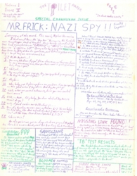 At this point I was a Junior and Larry a senior, still at Foothill Highschool in Tustin. The principal of our school was unfortunately named William Frick. I say unfortunate because he happened to share his name with a famous Nazi war criminal, Wilhelm Frick. When Larry and I learned of this happy coincidence, it warranted a special edition of The Toilet Paper. Our headline screamed that Wilhelm Frick escaped the gallows at Nuremberg, and went on to become the principal of our Highschool. It did not go over well with Mr. Frick. A friend of ours who worked in the front office explained what happened next. "The principal read the paper, grabbed his chest and fell to the floor. An ambulance was called as he continued writhe and clutch the paper in his hand. He was still holding the crumpled up paper as they put him on the gurney and drove him off to the hospital." Luckily, it was just a mild "heart event", and Mr. Frick was back in school a week and a half later looking for vengeance.