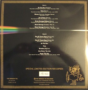 S1: ON THE RUN (OUTTAKE)/TIME (DEMO)/MONEY (WATERS DEMO)/US AND THEM (DEMO)/BRAIN DAMAGE-ECLIPSE (DEMO)/BRAIN DAMAGE (OUTTAKE #1)/BRAIN DAMAGE (OUTTAKE #2)