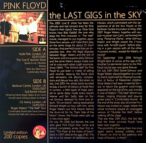 S2: FLICKERING FLAME* (ROGER WATERS & JOHN CARIN)/ARNOLD LAYNE* (GILMOUR, MASON & WRIGHT)/COMFORTABLY NUMB** (ROGER WATERS SOLO TOUR WITH GILMOUR)/OUTSIDE THE WALL** (ROGER WATERS SOLO TOUR WITH GILMOUR & MASON)