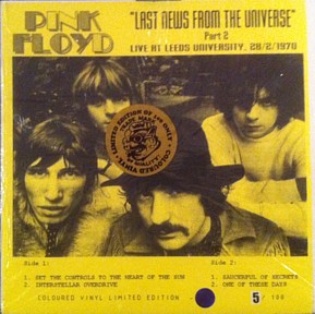 Over the years the Pink Floyd bootleg collecting community has had to endure several idiots who are buying cheap titles and re-packaging them to give the impression of a new and unique release. It is hard to take the moral high ground when it comes to bootlegs but this practice is spoiling the fun of collecting for many people. Up until now these releases have got a page on the main website but as they are still appearing I've decided that they are not worth the effort of making a page each for them and anyway, they should all be listed on one page and crossed referenced to the LP that they actually are. If you have bought one of these recently in the belief that it is an original release then I would suggest you ask for a refund from the seller as in our opinion they are completely worthless. You can read more about these on the 'Modern Day Labels' page..... If you can't find your album on the main index pages then just hope it's not here!